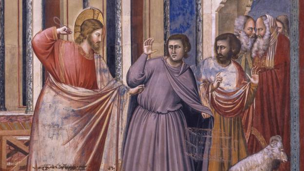Anyone in any doubt about the artist's sympathetic attitude to anger needs merely look above the personification of Ira in the chapel to Giotto's portrayal of Christ punishing a scrum of greedy money changers that he has stumbled across in the temple. Throughout cultural history, the New Testament subject has been a favourite of artists keen to demonstrate that they could capture the human countenance and form in a wider array of moods than merely devotional calm. Tackled by everyone from Pieter Brueghel the Elder to El Greco, the subject allowed painters the opportunity to flex their brushes without appearing to glamorise otherwise unsavoury behaviour. Anger isn't anti-social if it's righteous and divine. In almost every version of the incident by Old Masters, Christ is shown with arm raised, wielding 'a whip of cords' in faithful conformity to the language of biblical accounts of the story, as he thrashes the merchants who have turned a place of worship into one of worldly profit. But Giotto's take on the story is striking. At first glance, the outraged Christ appears to go full Fight Club on his target as he dispenses with the swinging lash in favour of bare-fisted justice. "The raising of the right hand, not holding any scourge," according to a 19th-Century traveller who chronicled every inch of the chapel's glorious interior, "resembles the action afterwards… of Michelangelo in his Last Judgement".